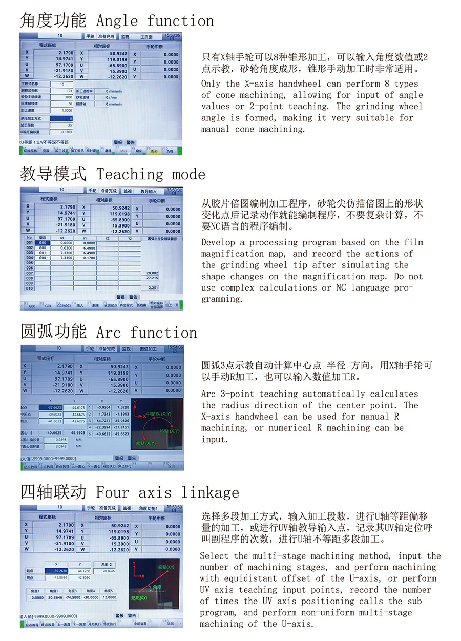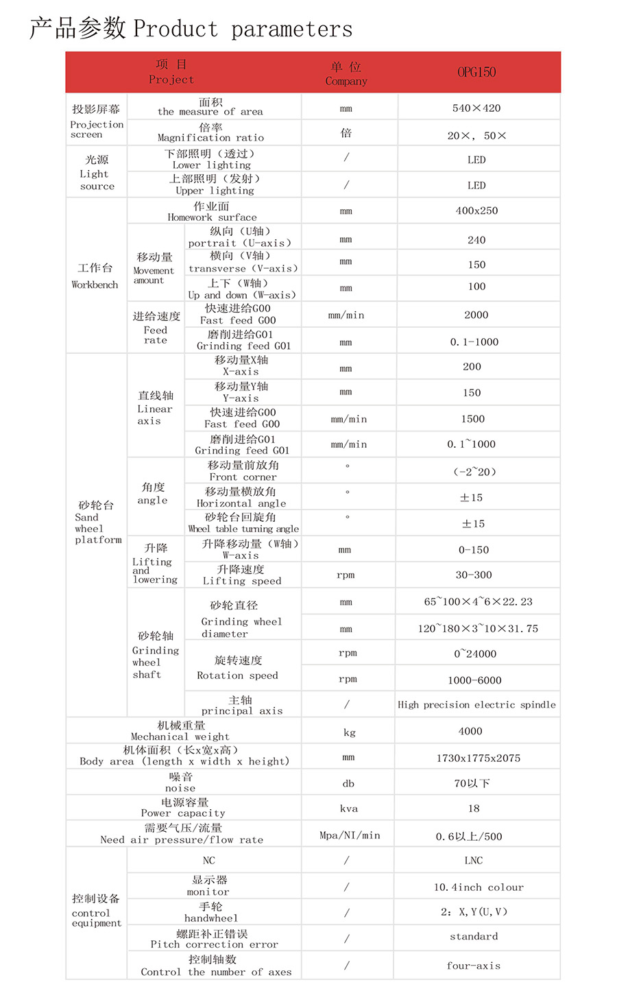Menu产品展示PRODUCT DISPLAY 影像曲线磨床CCD80H 光学曲线磨床OPG150 数显曲线磨床DPG150 数显曲线磨床DPG150AT 胶片机 推荐产品 →影像曲线磨床CCD80H →光学曲线磨床OPG150 →数显曲线磨床DPG150 产品展示 现在:首页>>产品展示 光学曲线磨床OPG150 类别:产品展示 描述:角度功能:只有X轴手轮可以8种锥形加工,可以输入角度数值或2点示教,砂轮角度成形,锥形手动加工时非常适用。教导模式:从胶片倍图编制加工程序,砂轮尖仿描倍图上的形状变化点后记录动作就能编制程序,不要复杂计算,不要NC语言的程序编制。 产品规格 联系我们 产品介绍 相关的 胶片机 数显曲线磨床DPG150AT 数显曲线磨床DPG150 光学曲线磨床OPG150 影像曲线磨床CCD80H
